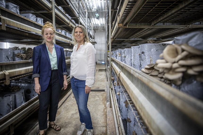 Mariëlle: „Zo’n vijftien procent van de oesterzwammenoogst, die anders verloren zou gaan of hooguit als veevoer zou dienen, wordt nu hoogwaardig gebruikt. Ik kan wekelijks zo’n 350 kilo aan steeltjes leveren, maar als je naar de hele sector kijkt, gaat het om zo’n 400.000 kilo per jaar!”