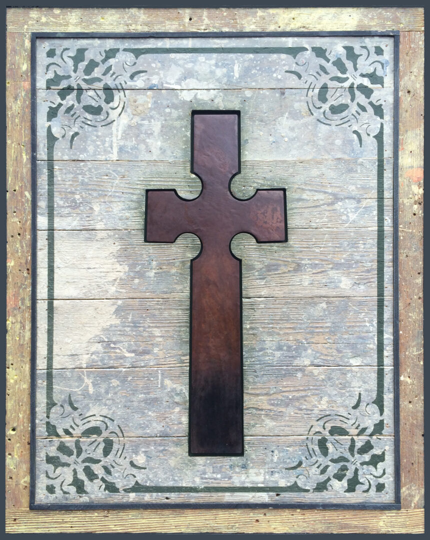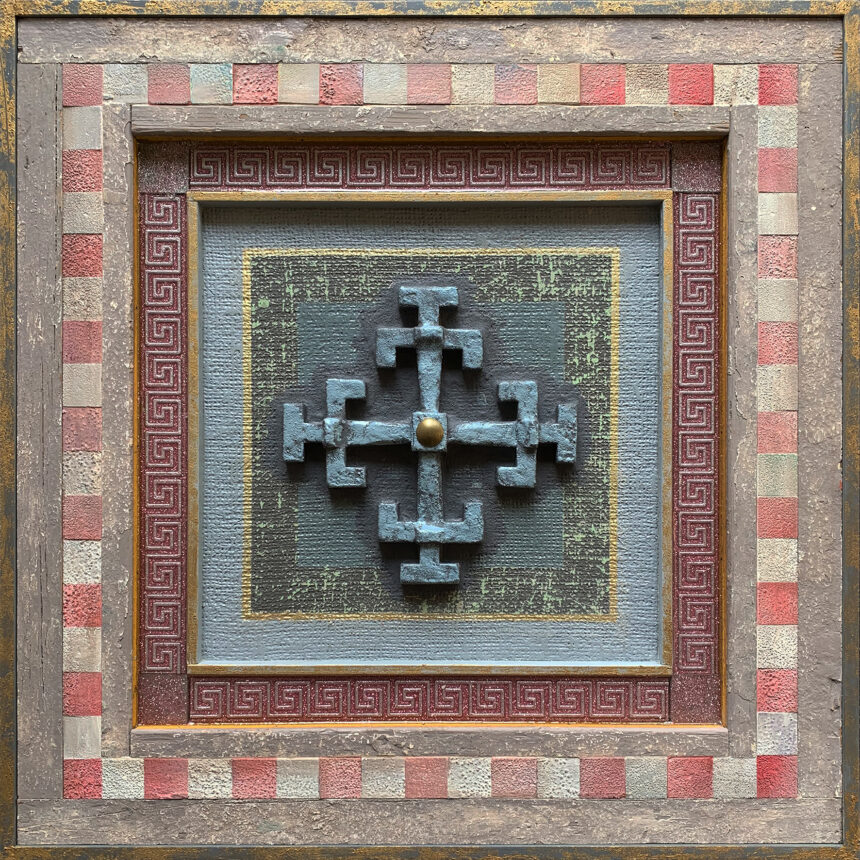 Over de in Goirle geboren, in Bergeijk gesettelde en momenteel in Dommelen wonende Harry Verhoeven kun je boeken volschrijven. En dat is ook gedaan, getuige prachtige uitgaves als ‘De kunst van het kijken en maken’ en ‘De verwondering van het maken’, maar we zoomen in op zijn iconen. Wie goed kijkt leest daar zijn leven aan af, zoals een goed luisteraar Beethovens leven hoort langskomen in de intimiteit van zijn strijkkwartetten. „Zeven jaar geleden overleed onze dochter Nadieh. Net als haar zusje Saskia, die haar al in de dood was voorgegaan, leed ze aan PCH2, een aandoening waarbij de kleine hersenen vanaf de geboorte ernstig onderontwikkeld zijn. Voor de tweede keer maakte ik een grafmonument met alles wat daarbij hoort voor ons kind. Het stalen kruis dat ik in haar kistdeksel heb gelegd heb ik kort daarna nog eens gemaakt, ik vond de vorm zo mooi. Dat heb ik uitgevoerd in mijn eerste van de inmiddels vijfenvijftig iconen.” In de subtiliteit van de vrij strak vormgegeven iconen – „Met een icoon doe je niet zomaar wat” – komt naast vakmanschap, materiaalkennis en creativiteit ook de filosofie van Verhoeven tot uitdrukking, een filosofie die zijn wortels vindt in zijn katholieke opvoeding.
