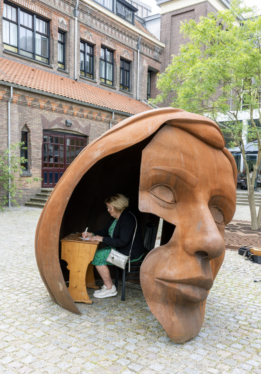Midden in de stad staat Pachamama, de oermoeder. Wie een brief aan een dierbare overledene wil schrijven, kan in haar hoofd kruipen. Letterlijk. Pen en papier liggen klaar.