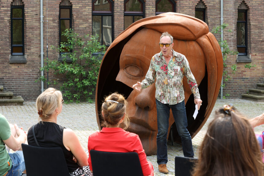 Pachamama reist rond. Ze stond eerder in Heusden, in Maastricht en nu in Eindhoven op het ‘schoolplein’ van DOMUSDELA, midden in de stad, in een oase van rust en ruimte. Ook voor Joyce Dunki Jacobs, museologe en sinds 2009 curator van de kunstcollectie van Coöperatie Dela, is ‘het hoofd’ een bijzonder project.