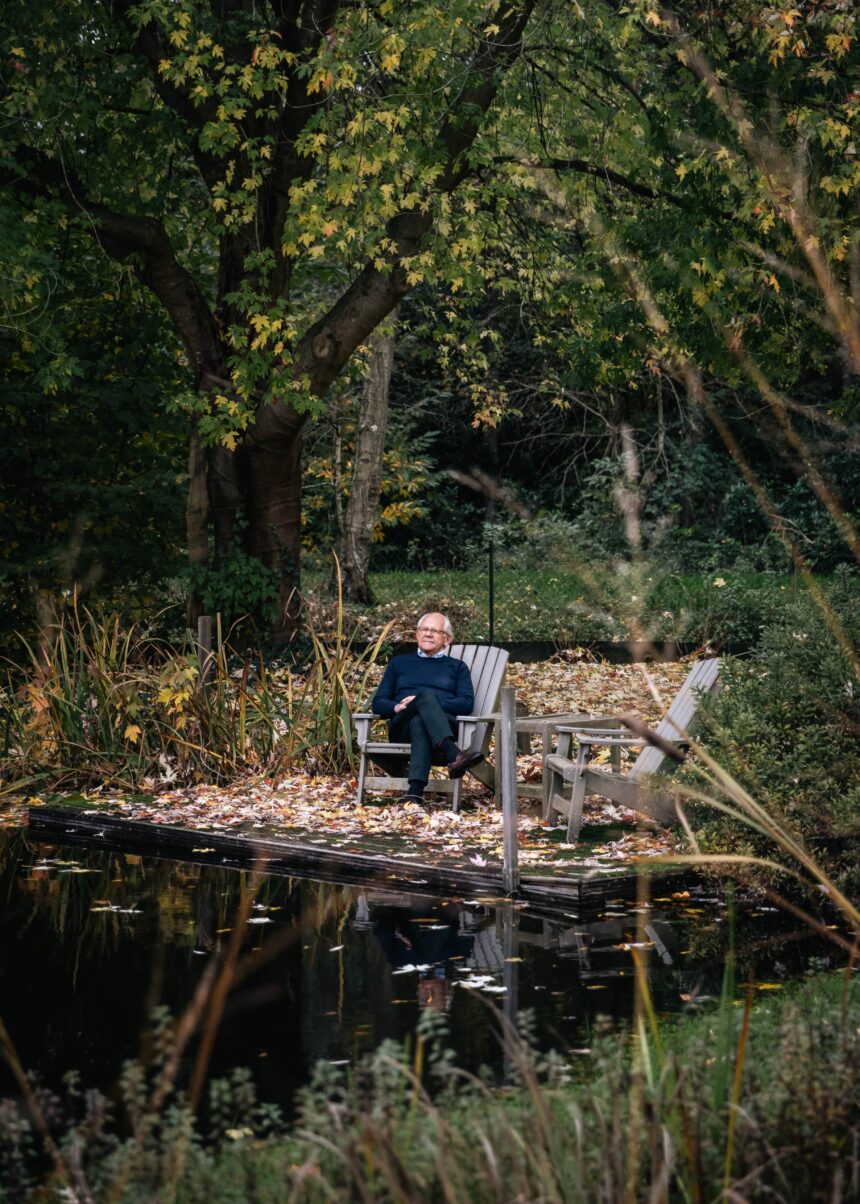 Later konden we er een hectare bijkopen. Dat hebben we gedaan, als zakelijke investering. Dat stuk grond grenst aan de openbare weg. Negen jaar geleden is daar een Voedselbos op gezet. Een jong stel had mijn vrouw, die een actief vrijwilligster was bij het Rode Kruis, benaderd. Zij vonden het een ideale plek. Wij waren enthousiast. Op vrijdag komen vrijwilligers helpen in het bos. Het loopt als een trein. Op de andere helft hebben wij zelf een grastuin aangelegd in de stijl van Piet Oudolf. Wij genieten daar zomers van ons tuinhuisje. We leven hier zo fijn. De kans om hier te kunnen wonen is ons overkomen, daar durf je zelf niet eens aan te denken.”