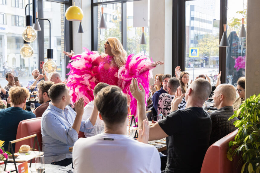 Voorzitter Johan Stribos, ook mede-oprichter en secretaris van stichting Eindhoven Pride, vertelt met welke leuke evenementen Queer 040 de stad besprenkelt met gezellige regenboogglitter: „Vorig jaar zijn we begonnen met Saturday Serve, de drag brunch op zaterdag in The Social Hub.” Dat was meteen een eclatant succes: „Drie in het voorjaar en twee in het najaar, alles stijf uitverkocht. Met kerst is er een avondeditie bijgekomen omdat de brunch zelf binnen twee dagen was uitverkocht. Dit jaar staan er vier op de planning. De Saturday Serve is óók al uitverkocht. Daar gaat een hele prominente Eindhovenaar als mystery drag optreden”, gniffelt hij.